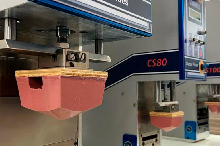 A máquina CP 90 JrC Prog tem uma área de impressão de 80 mm de diâmetro, com as dimensões do seu clichê (de aço) de 100 x 200 mm. Esse modelo chega a 2.500 peças por hora, e utiliza a tecnologia de copo selado da Oscar Flues.